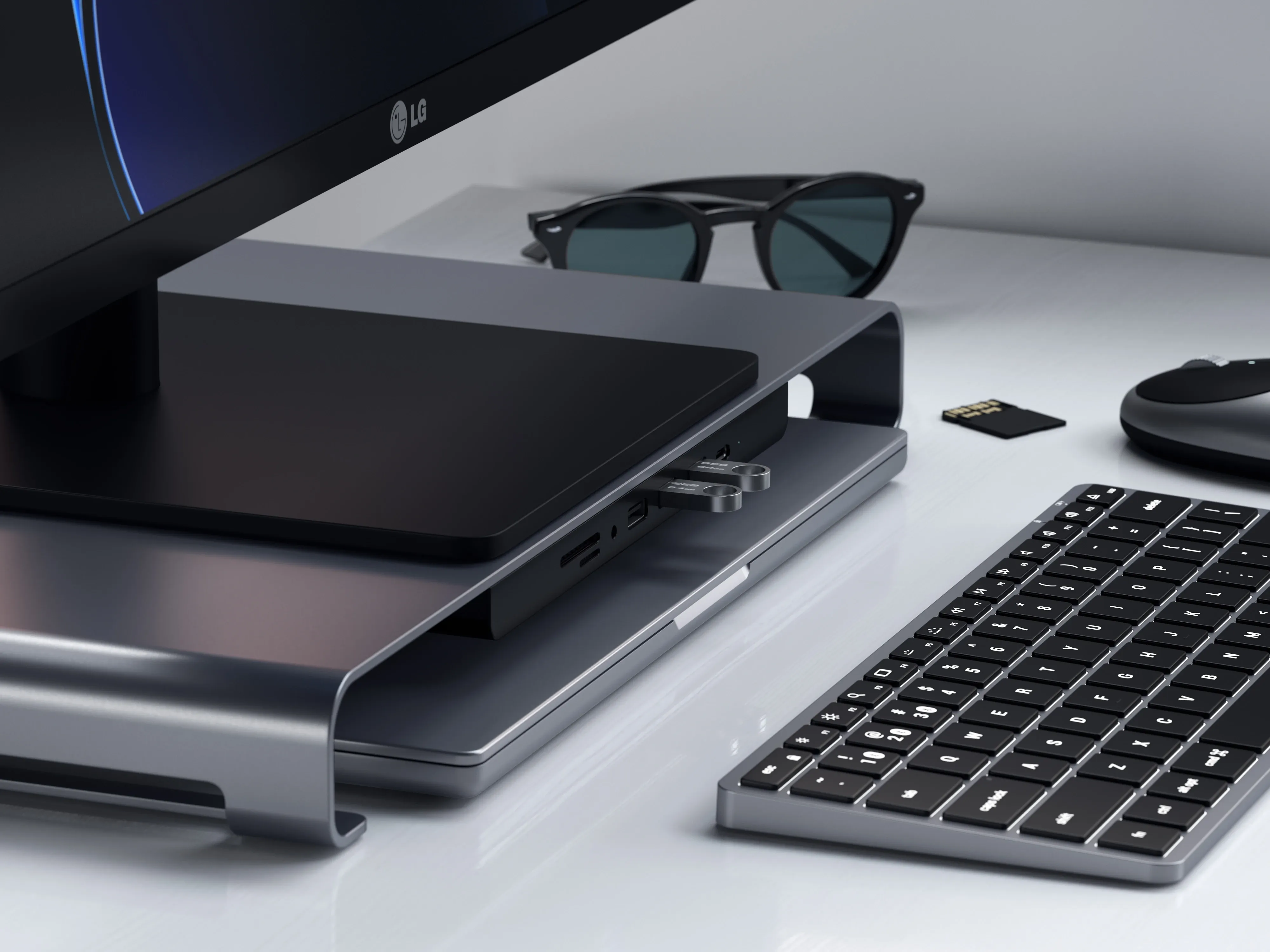 The Satechi USB-C Monitor Stand Hub XL offers five essential expansion ports that allow you to be more productive and...The Satechi USB-C Monitor Stand Hub XL offers five essential expansion ports that allow you to be more productive and maximize your space in style with a premium and modern aluminum finish. This USB-C Monitor Stand Hub XL not only looks great but it’s also practical, durable, and functional. Helps you reduce your neck strain and encourage better posture by elevating your device to a comfortable viewing angle with its seamless design.